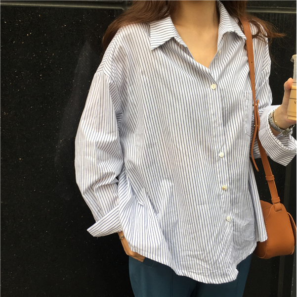 早秋女裝韓版簡(jiǎn)約百搭寬松學(xué)生翻領(lǐng)排扣襯衫